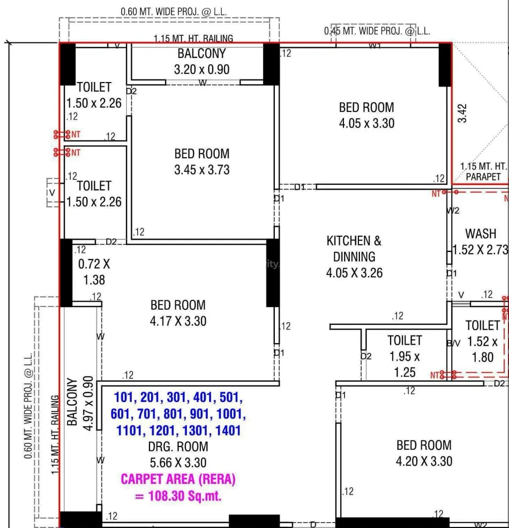 Krishna Ever Mark offers expansive 4 BHK apartments, designed for families seeking spacious and opulent living environments.