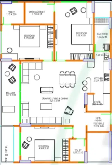 Popular configurations include 3 BHK, 4 BHK, 5 BHK units. As per the area plan, units are in the size range of 1277.0 - 2519.0 sq.ft..