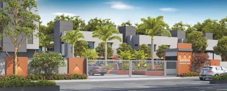The architecture of Krishna Narayan Home is a testament to grandeur, with a majestic entrance that welcomes both residents and visitors alike.