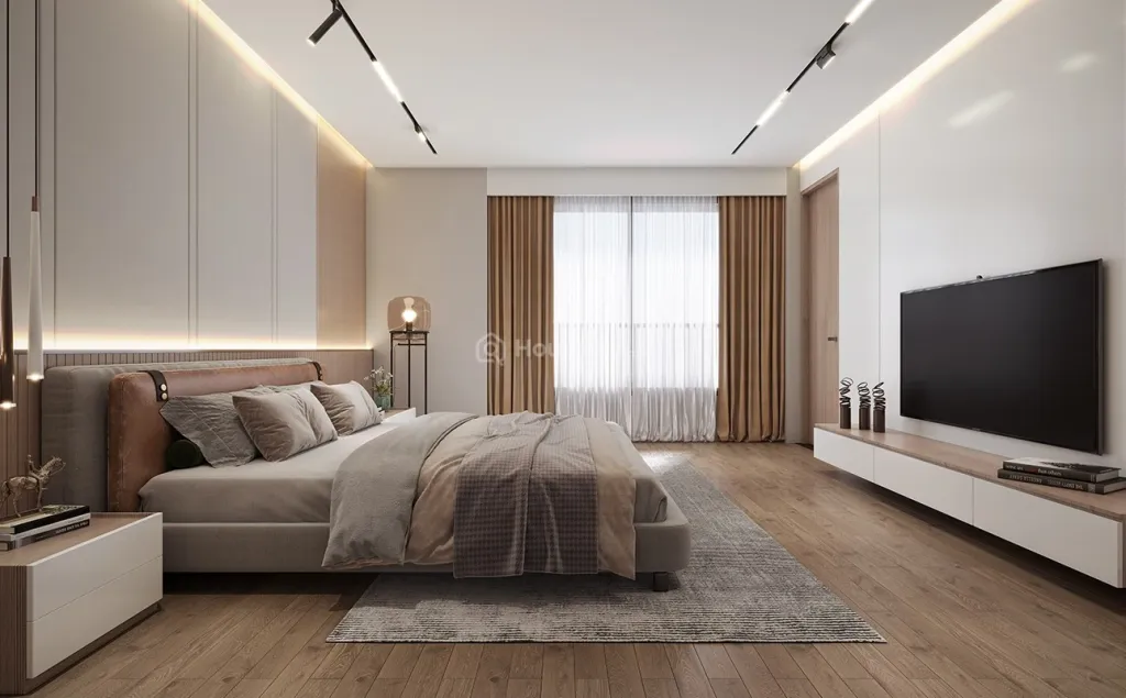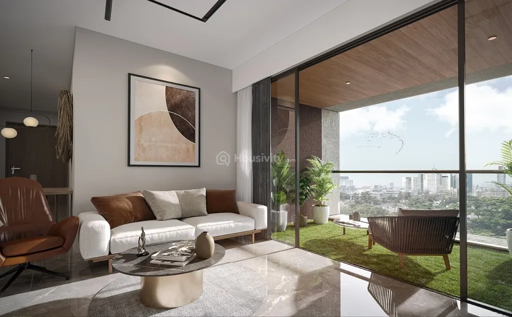 A designer modular kitchen, vitrified flooring, premium fittings.