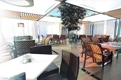 Decorative laminated door at the entrance.
